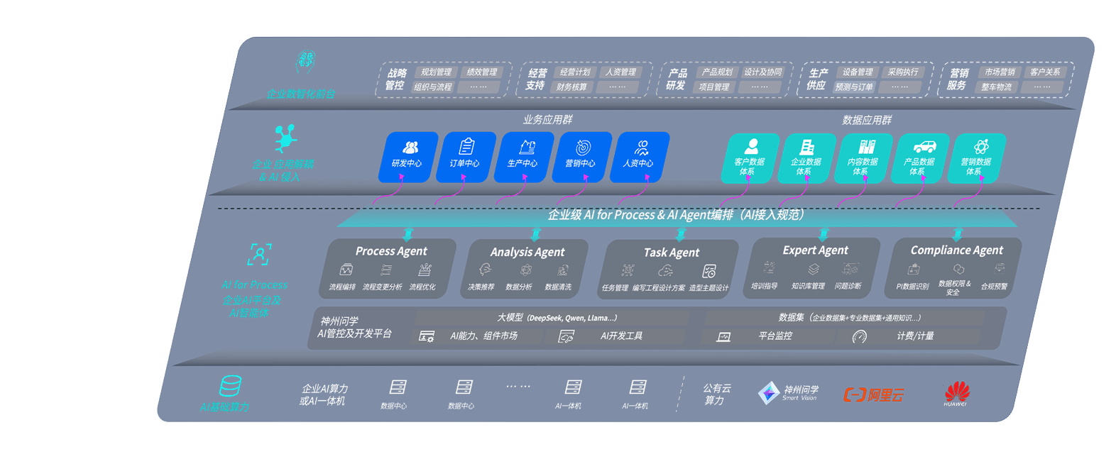 地球人问学智车解决方案是一套基于AI技术的汽车行业智能化系统,,,覆盖从底层算力到顶层AI应用的全栈方案。。方案由算力层、、、模型层和应用层组成:算力层,,,方案支持多种一体机配置,,具备云端灵活部署、、、、多云适配以及动态优化计算资源的能力;模型层,,地球人问学平台版提供了企业级AI应用一站式构建与管理平台,,,支持基于后训练强化技术的汽车企业专属模型的训练、、、评测和运营;应用层,,地球人问学DeepSeek版提供包括超级员工、、、智能招采、、、智能营销、、、、智能客服、、AI for BI等一系列解决方案,,可助力汽车行业实现数字化转型,,让管理更智能、、、、响应更敏捷。。。。